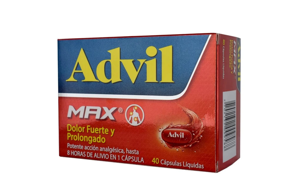 Advil Max es un producto de Advil que contiene ibuprofeno en una fórmula líquida para aliviar dolores fuertes y prolongados de cabeza, espalda, muscular y articular.