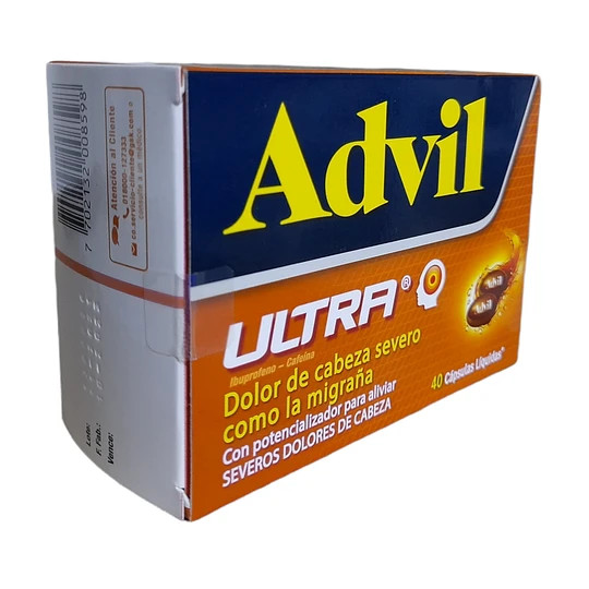 Advil Ultra con potencializador analgésico brinda alivio rápido y efectivo de dolor severo de cabeza y dolor de cabeza asociado a migraña